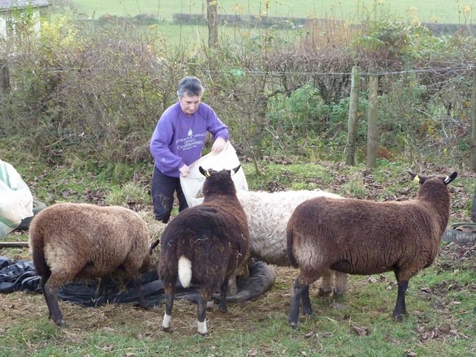 Zwartble sheep helping out at feeding time! :)